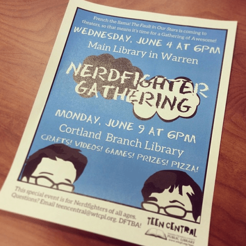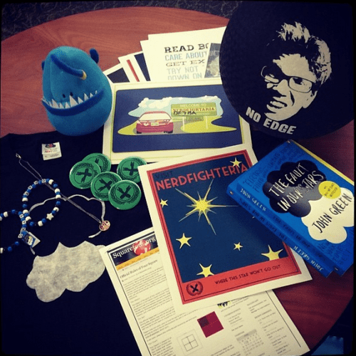 We purchased ~40 Nerf guns from hasbrotoyshop.com, laid down some different colored tape throughout our library, gave whistles to all staff members, put boxes everywhere, and let ’em at it.