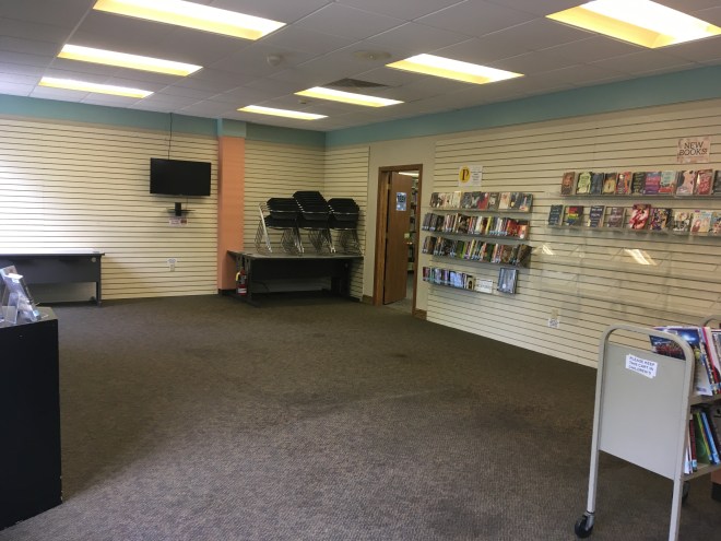 My current teen space, with all the fun stuff packed away. No games, no crafts, no consoles, no tables, no computers.