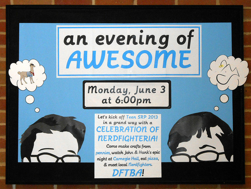 This is everything you need to run a successful Hunger Games scavenger hunt-type program. My previous program in 2012 was fun; the event I ran for Catching Fire was much better. Fifteen was the perfect number for an hour’s worth of fun, with some easy & some hard challenges for everyone. They don’t even need to have read the books to do anything other than the trivia.