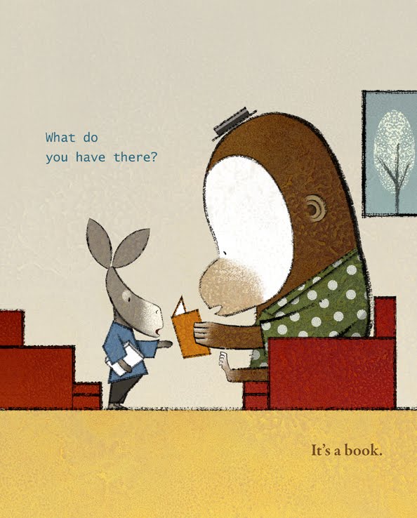 So, while everyone is freaking out over the newest Lane Smith book, It’s a Book, I’ve discovered that the real audience of this book is teens. I took it to my last Teen Advisory Board meeting, & after I did my usual talking of the books, I pulled it out & read it to them, preschool story-time style.