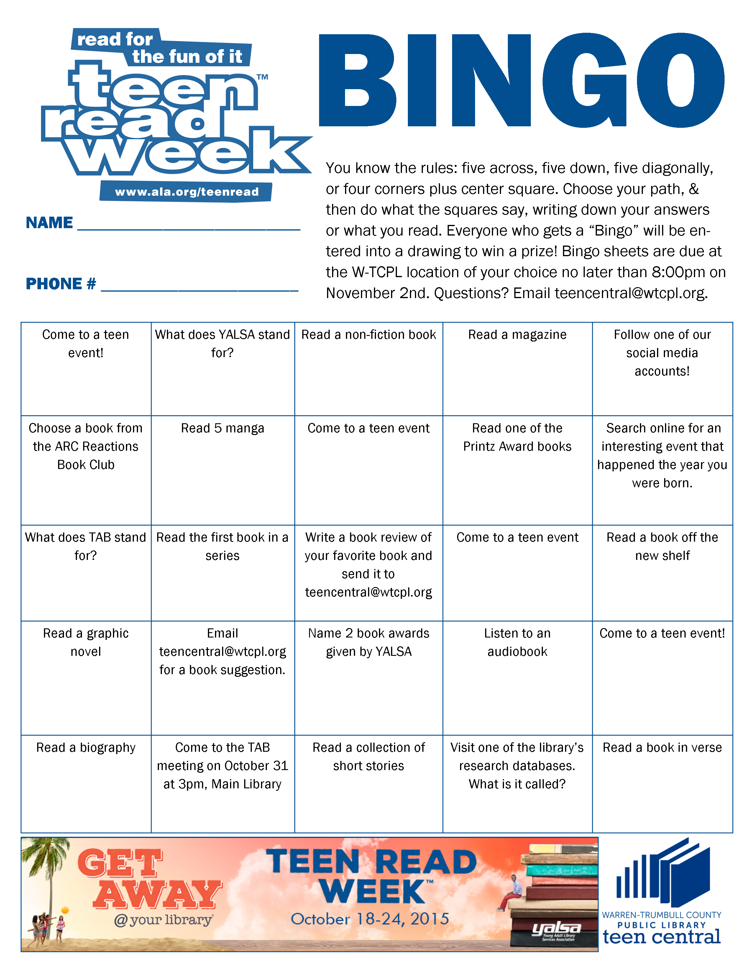 Teen Read Week Bingo